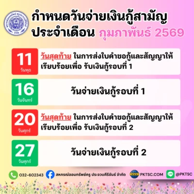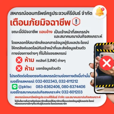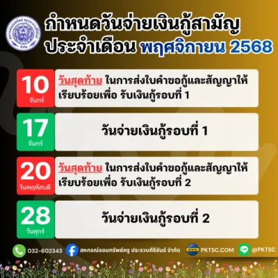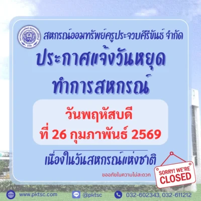 หรือแจ้งโอนเงินผ่านทางไลน์สหกรณ์ฯ ID: @pktsc กดที่นี่