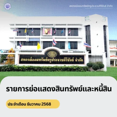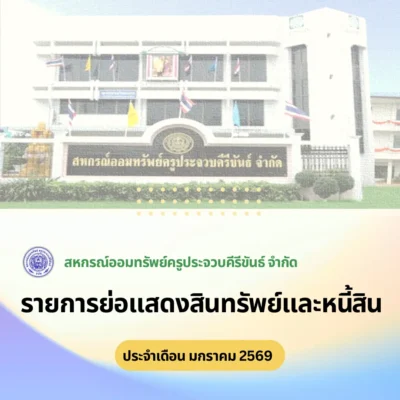 เลขที่บัญชีธนาคารสหกรณ์ออมทรัพย์ครูประจวบคีรีขันธ์ จำกัด