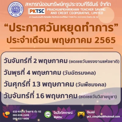 สหกรณ์ออมทรัพย์ครูประจวบคีรีขันธ์ จำกัด เปิดให้บริการสม […]
