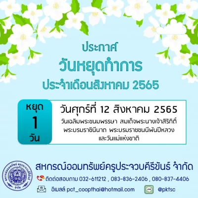 สหกรณ์ออมทรัพย์ครูประจวบคีรีขันธ์ จำกัด เปิดให้บริการทุ […]