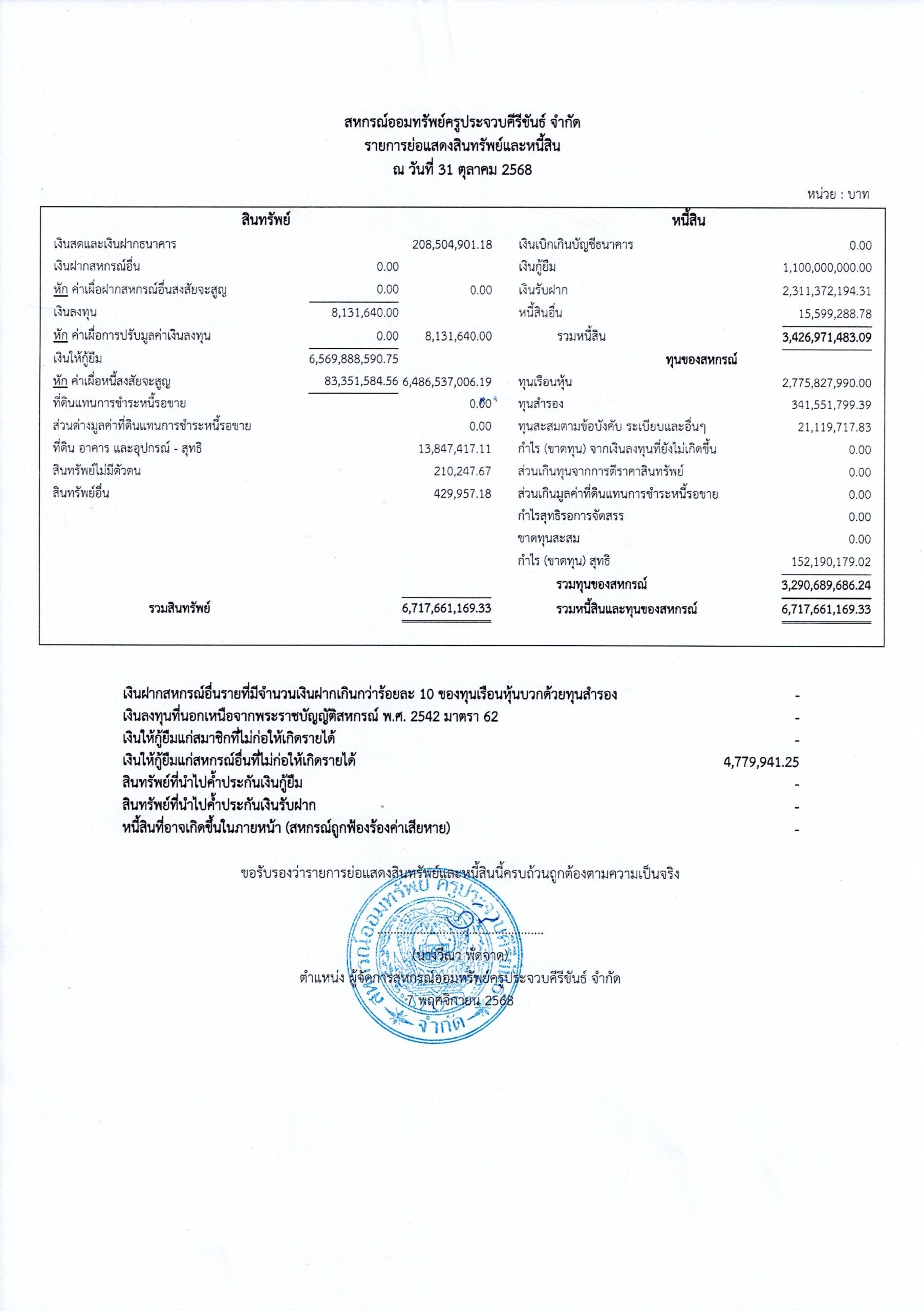 รายการย่อแสดงสินทรัพย์และหนี้สิน